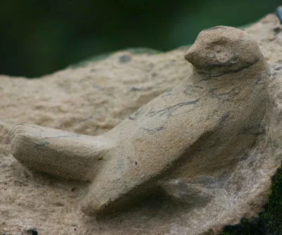 This bird was carved from stone by an artist named Jennifer Tetlow in 2011.